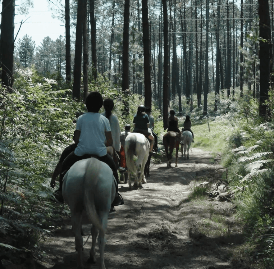 Disfrutaremos cabalgando entre árboles y senderos tranquilos, dejando que el ritmo del caballo y el susurro del bosque marquen el inicio de la experiencia.